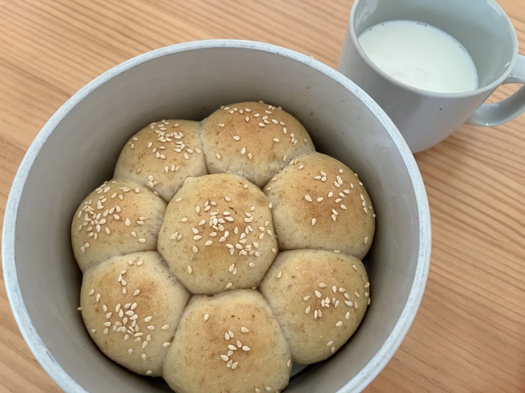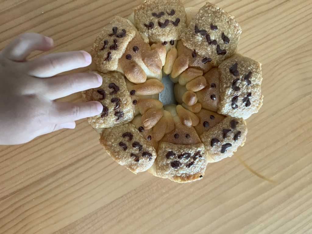 每次整麵包都需要3小時以上的時間,如果想快速吃到新鮮出爐麵包,冷凍發酵一整晚後,第二天早上室溫分鐘放半小時左右回溫就可以立即焗,寶寶就可以有新鮮出爐的麵包吃。
