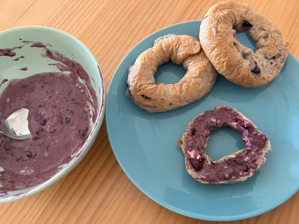 5. ⁠將忌廉芝士平均分成三份,將兩份分別加入30克及20克藍莓醬,然後拌勻備用。