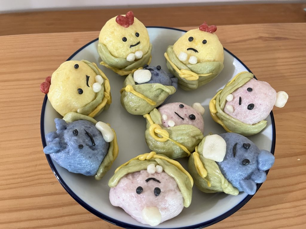 一歲半也可吃糭?過端午節當然不少得糭作為傳統食物慶節,可是糭中的糯米、肥豬肉、及鹹蛋黃等成份均含多脂肪、多膽固醇、多鈉、及難以消化,大人不宜食過多,更何況是一歲幼兒;故此想到了要弄糭子饅頭,加上角落生物造型,健康、好吃、好看又好玩。
