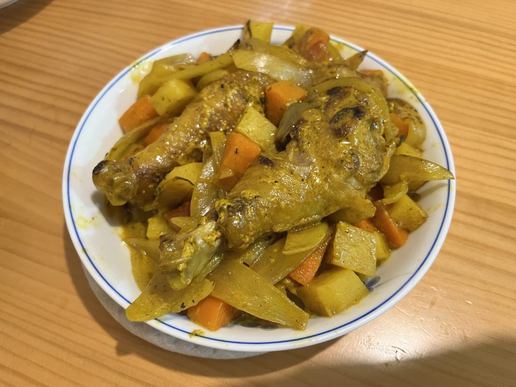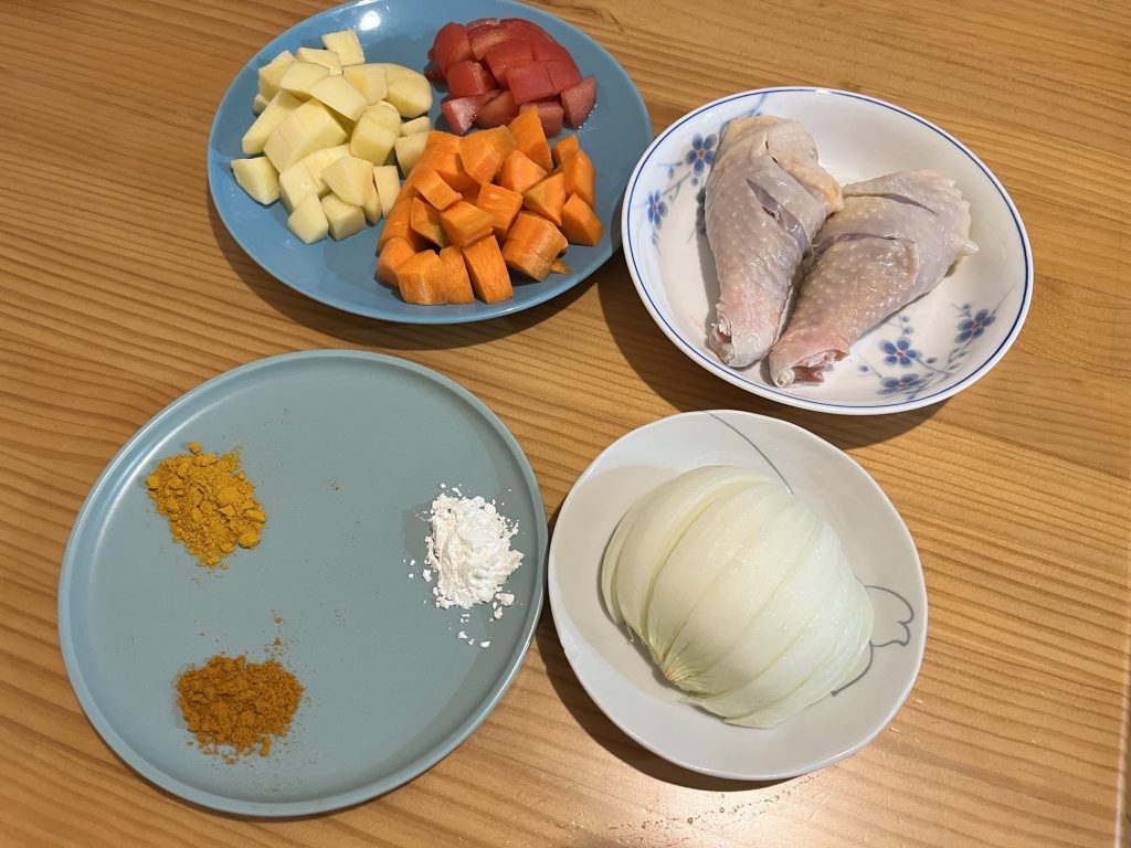 - 用少許咖喱粉及黃薑粉醃雞髀